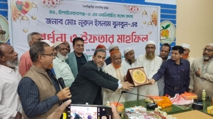 মাহিদুল ইসলাম ফরহাদ চাঁপাইনবাবগঞ্জ জেলা প্রতিনিধি চাঁপাইনবাবগঞ্জ-৩ আসনে সংসদ সদস্য নবনির্বাচিত এমপি মোঃ নূরুল ইসলাম বুলবুল-কে সংবর্ধনা ও ইফতার মাহফিলের আয়োজন করেছে হৃদয়ে-৮৩ (এস.এস.সি-১৯৮৩ ব্যাচ)। read more