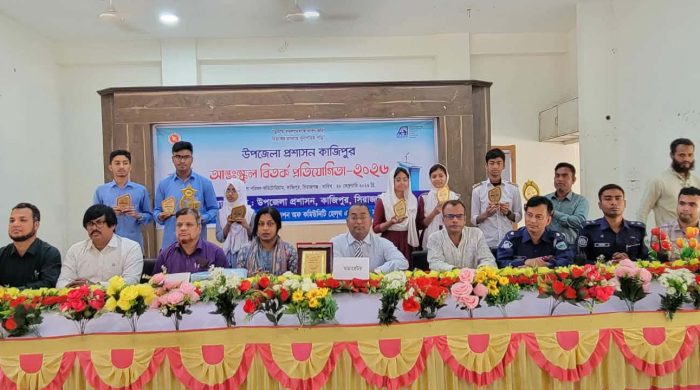 অঞ্জনা চৌধুরী স্টাফ রিপোর্টার” হৃদয়ে বাংলাদেশকে ধারণ করি, বিতর্কের মাধ্যমে যৌক্তিক সুনাগরিক গড়ি” এই প্রতিপাদ্যকে ধারণ করে সিরাজগঞ্জের কাজিপুর আন্তঃস্কুল বিতর্ক প্রতিযোগিতা-২০২৬ অনুষ্ঠিত হয়েছে।২৮ ফেব্রুয়ারি উপজেলা নির্বাহী অফিসার এর উদ্যোগে read more