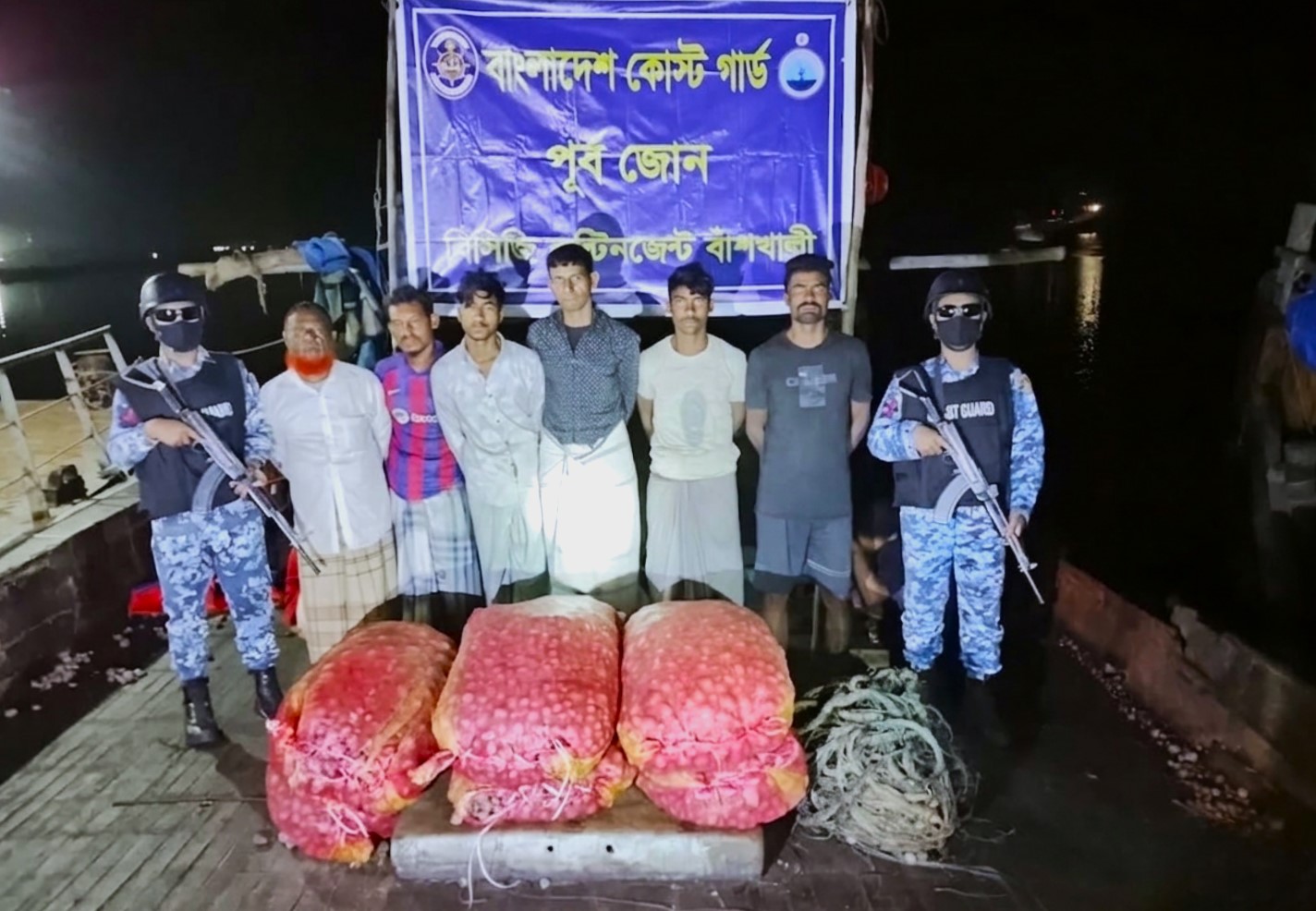 মায়ানমারে পাচারকালে ১টি অবৈধ আর্টিসানাল ট্রলিং বোট, ট্রলিং জাল ও বিপুল পরিমাণ আলুসহ ৬ জন পাচারকারীকে আটক করেছে কোস্ট গার্ড।