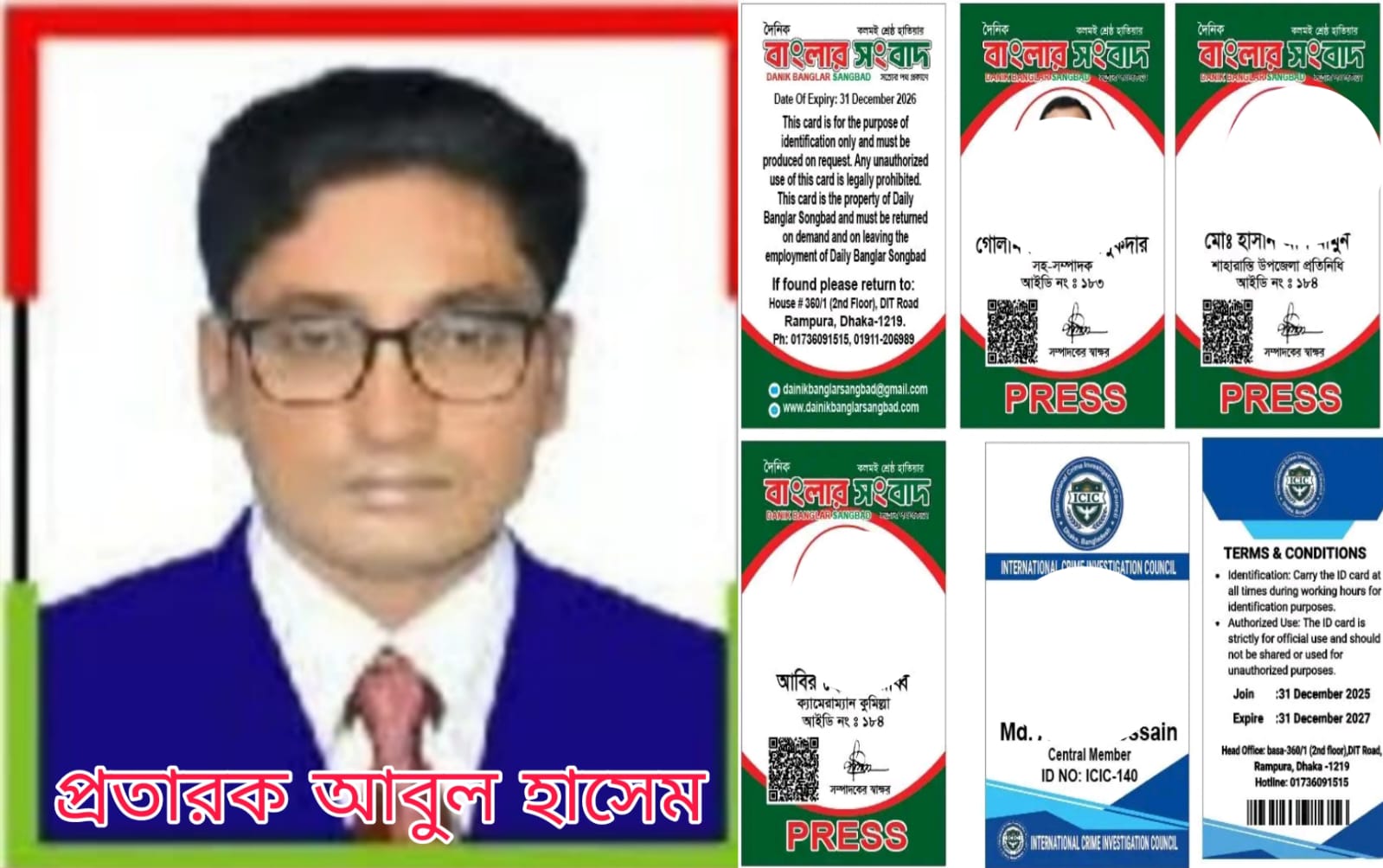 “দৈনিক বাংলার সংবাদ” নামে একটি কথিত পত্রিকার আড়ালে আইডি কার্ড বাণিজ্য পরিচালনার অভিযোগ উঠেছে। এ ঘটনায় কথিত সাংবাদিক মোঃ আবুল হাসেমের নাম সামনে এসেছে, যিনি অযোগ্য ও অপ্রশিক্ষিত ব্যক্তিদের সাংবাদিক হিসেবে গড়ে তোলার প্রলোভন দেখিয়ে অর্থ আদায় করছেন বলে অভিযোগ করেছেন ভুক্তভোগীরা।