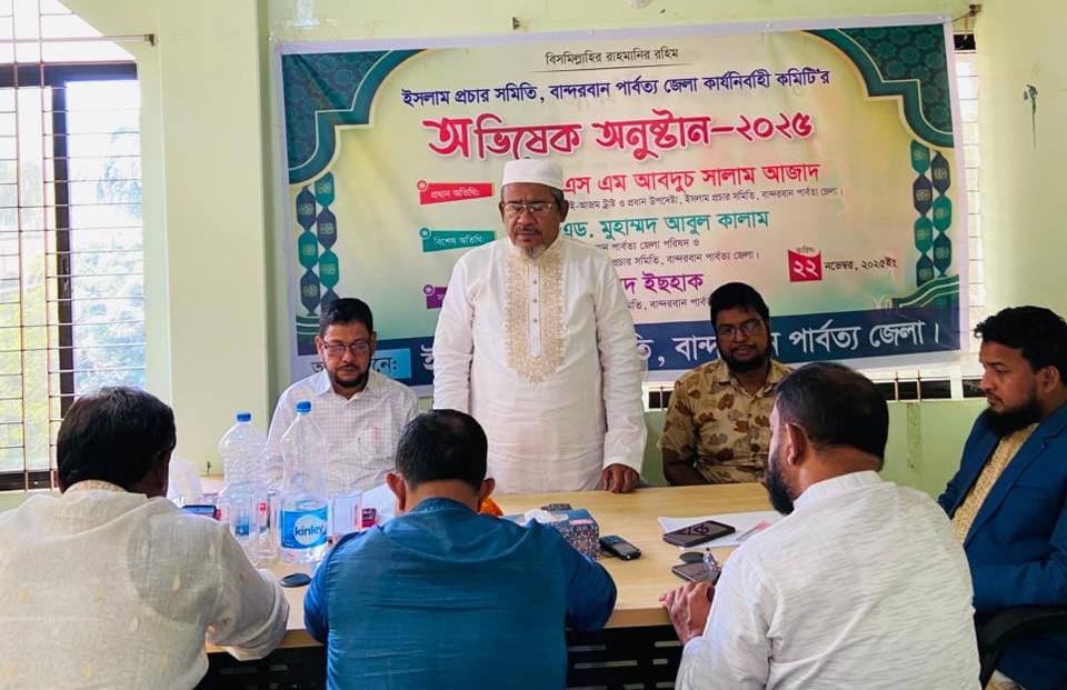 ইসলাম প্রচার সমিতি, বান্দরবান পার্বত্য জেলার কার্যনির্বাহী কমিটি'র অভিষেক অনুষ্টান-২০২৫ইং ২২নভেম্বর শনিবার সকালে বান্দরবান কেন্দ্রীয় ইসলামি সমাজ কল্যান সমিতির কার্যালয়ে অনুষ্ঠান হয়।