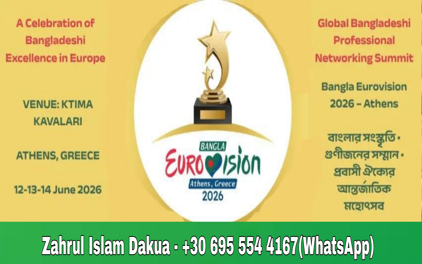 এথেন্সে তিন দিনের মহাসাংস্কৃতিক উৎসব: অনুষ্ঠিত হতে যাচ্ছে Bangla Eurovision Community Awards 2026
