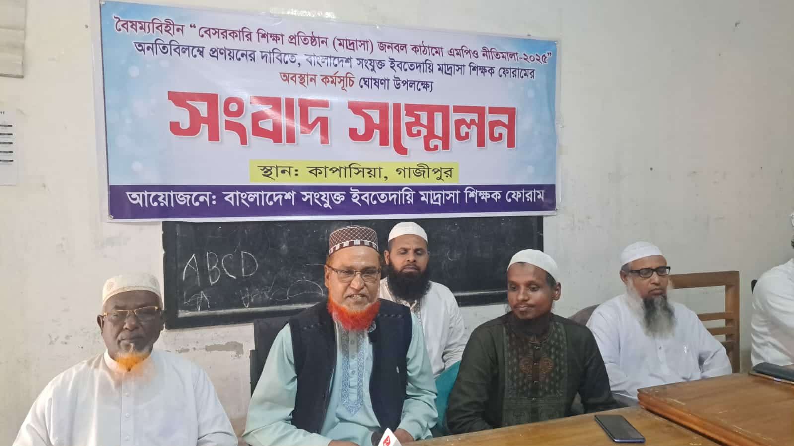 বৈষম্যবিহীন বেসরকারি জনবল কাঠামো ও মাদ্রাসা নীতিমালা ২০২৫ দ্রুত প্রণয়নের দাবিতে অবস্থান কর্মসূচি ঘোষণা করা হয়।
