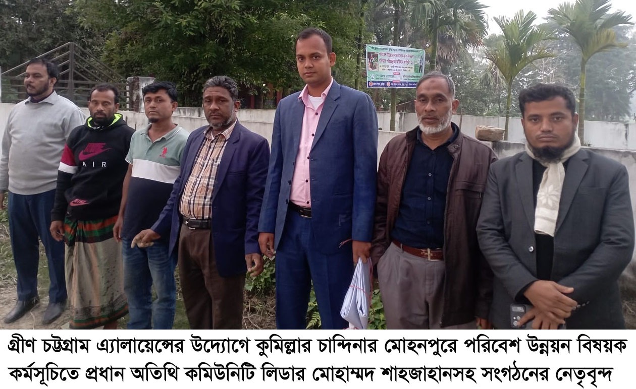 চট্টগ্রাম বিভাগীয় পরিবেশ, জলবায়ু, কৃষি ও সেবামূলক সংগঠন গ্রীন চট্টগ্রাম এ্যালায়েন্স ও অধিকার বঞ্চিত শিশু ফাউন্ডেশনের আয়োজনে কুমিল্লা জেলা প্রশাসন, চান্দিনা উপজেলা প্রশাসন, পরিবেশ অধিদপ্তর, কুমিল্লা ও বন বিভাগ, কুমিল্লার সার্বিক সহযোগিতায় গতকাল (৭ জানুয়ারি) বুধবার, বিকাল চারটায় কুমিল্লা জেলার চান্দিনা উপজেলার বরকইট ইউনিয়নের মোহনপুর খিরাসার বড় বাড়ি কবরস্থানে ও মোহনপুর মাদ্রাসায় পরিষ্কার পরিচ্ছন্ন অভিযান ও পরিবেশ উন্নয়নে বিভিন্ন ধরনের ফুলের চারা রোপণ এবং স্হানীয় জনসাধারণের মাঝে বিতরণ করা হয়।