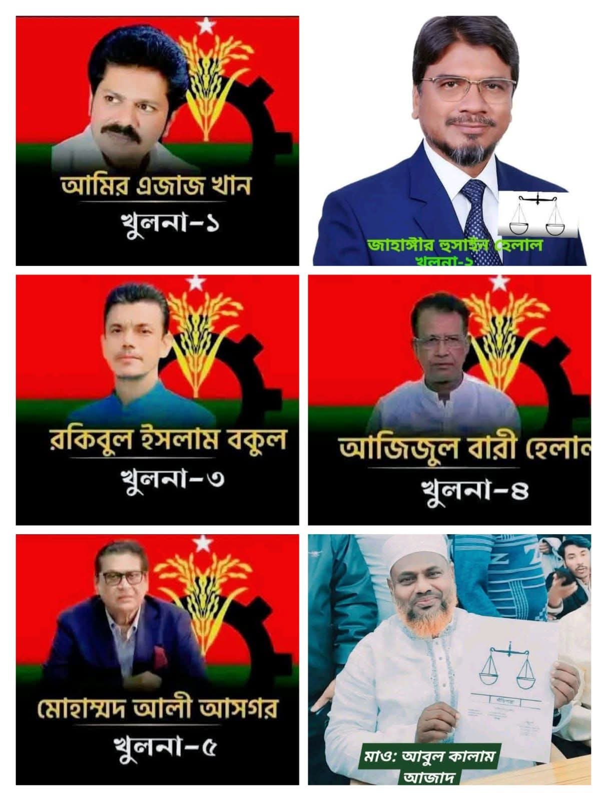 খুলনা-১ আমীর এজাজ খাঁন,খুলনা-২ শেখ জাহাঙ্গীর হুসাইন হেলাল, খুলনা-৩ রকিবুল ইসলাম বকুল, খুলনা-৪ আজিজুল বারী হেলাল,খুলনা-৫ আলী আসগর লবি ও খুলনা-৬ মো. আবুল কালাম আজাদ। প্রদত্ত বিবৃতি দাতারা হলেন,