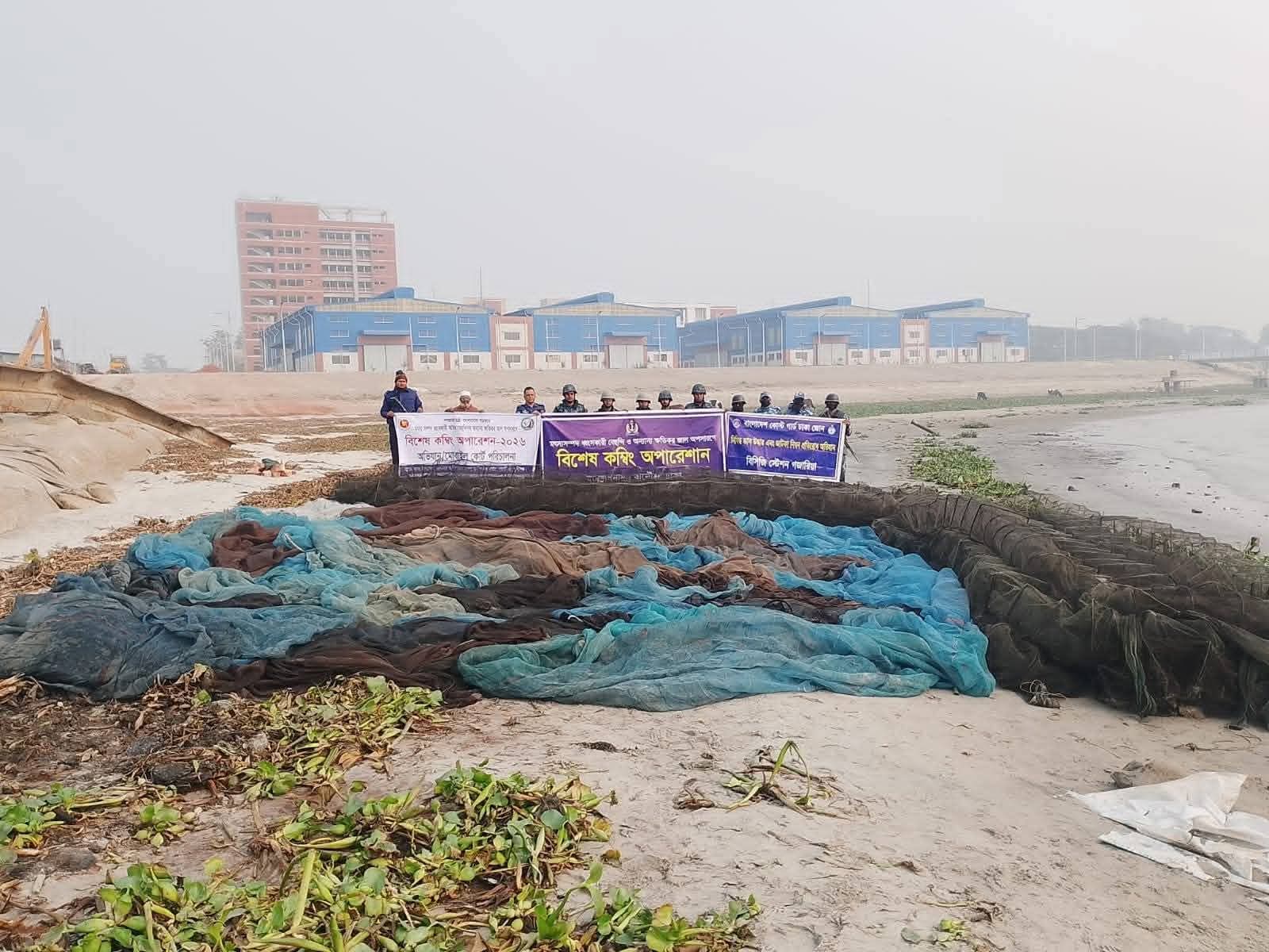 মুন্সীগঞ্জে গজারিয়া উপজেলা কোস্ট গার্ডের নেতৃত্বে পরিচালিত এক যৌথ কম্বিং অপারেশনে প্রায় ১ কোটি ৪৫ লাখ টাকা মূল্যের বিভিন্ন প্রকার অবৈধ জাল জব্দ করা হয়েছে রবিবার (৪ জানুয়ারি ২০২৬) সকালে কোস্ট গার্ডের মিডিয়া কর্মকর্তা লেফটেন্যান্ট কমান্ডার সিয়াম-উল-হক বিষয়টি নিশ্চিত করেন।