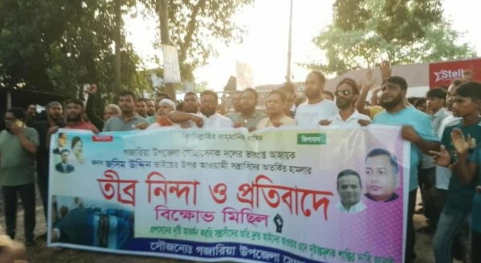 গজারিয়ায় স্বেচ্ছাসেবক দলের ভারপ্রাপ্ত আহবায়কের উপর হামলার প্রতিবাদে বিক্ষোভ ও প্রতিবাদ