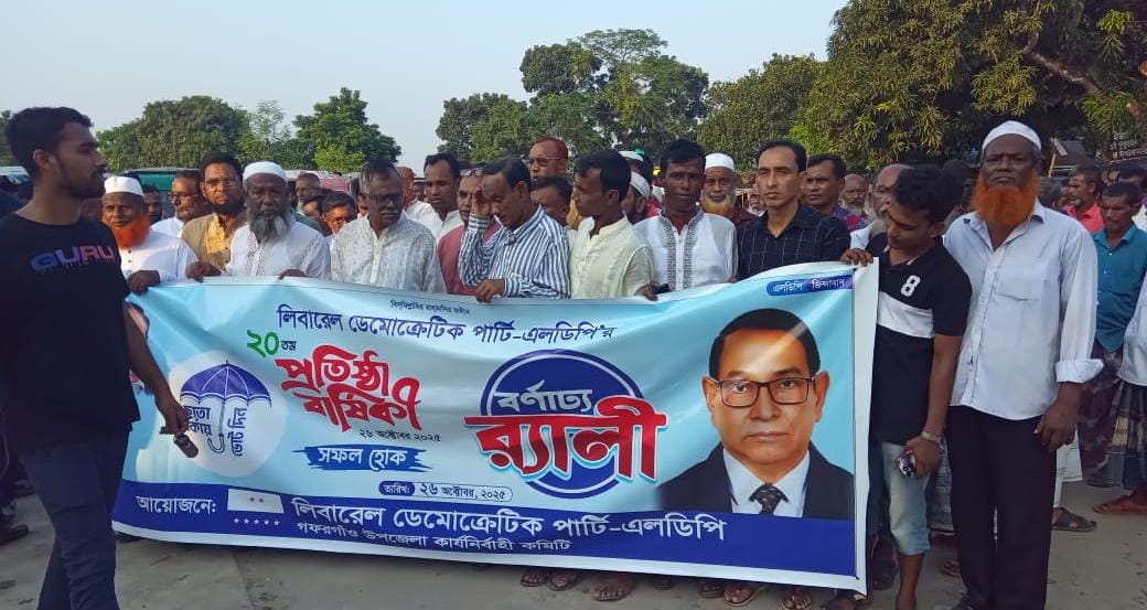 গফরগাঁওয়ে লিবারেল ডেমোক্রেটিক পার্টি-এলডিপি'র ২০তম প্রতিষ্ঠাবার্ষিকী উপলক্ষে এক বনাঢ্য র্যালি অনুষ্ঠিত হয়