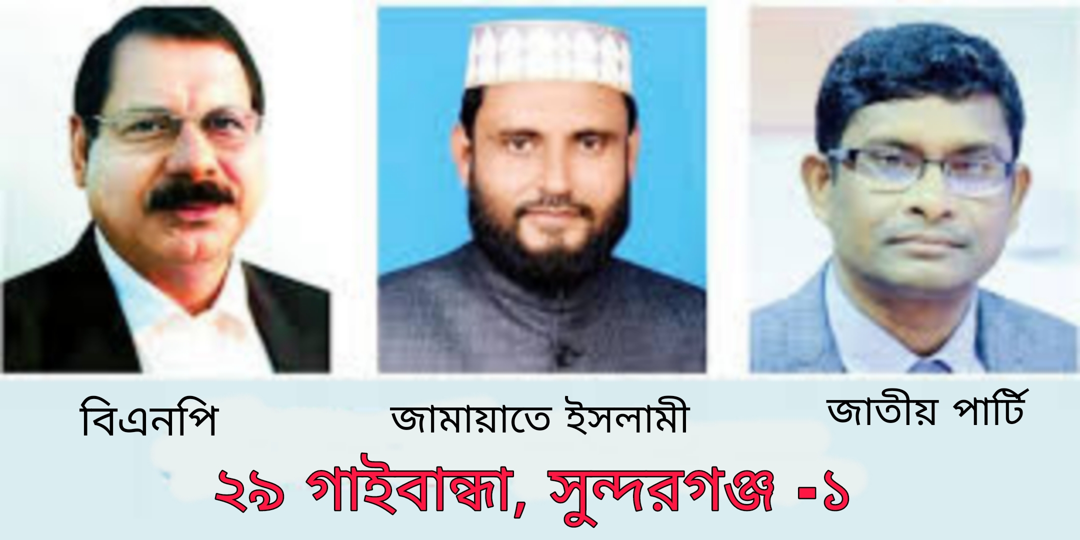 আসন্ন জাতীয় সংসদ নির্বাচনকে ঘিরে গাইবান্ধা জেলার ২৯ নম্বর আসন, গাইবান্ধা-১ (সুন্দরগঞ্জ) উপজেলায় ক্রমেই তীব্র হয়ে উঠছে নির্বাচনী প্রতিযোগিতা। এই আসনে একাধিক প্রার্থী থাকলেও মাঠপর্যায়ে আলোচনার কেন্দ্রে রয়েছেন মূলত তিনজন প্রার্থী। তাদের ঘিরেই গড়ে উঠেছে ত্রিমুখী লড়াই, যেখানে প্রতিটি পক্ষই নিজ নিজ শক্ত অবস্থান থেকে ভোটারদের কাছে পৌঁছানোর চেষ্টা চালাচ্ছে।