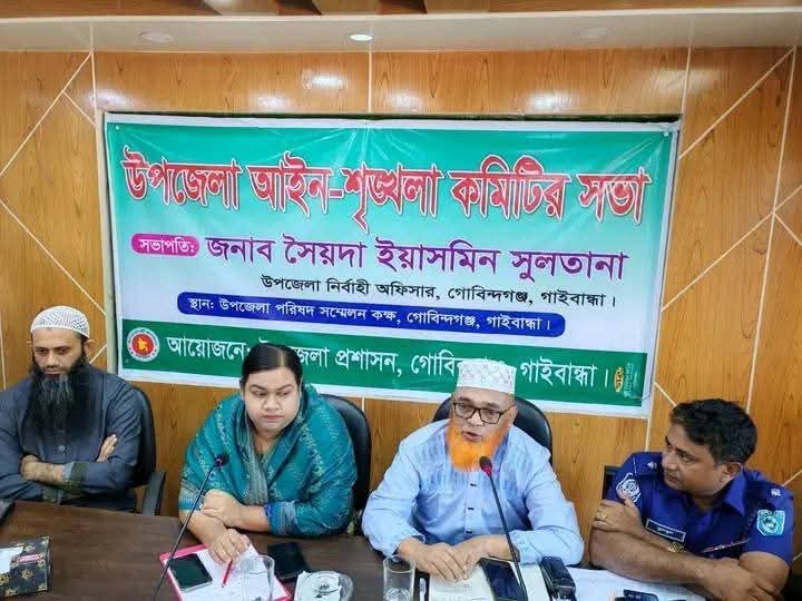 গাইবান্ধার গোবিন্দগঞ্জ উপজেলা আইন-শৃঙ্খলা কমিটির সভা অনুষ্ঠিত হয়েছে।