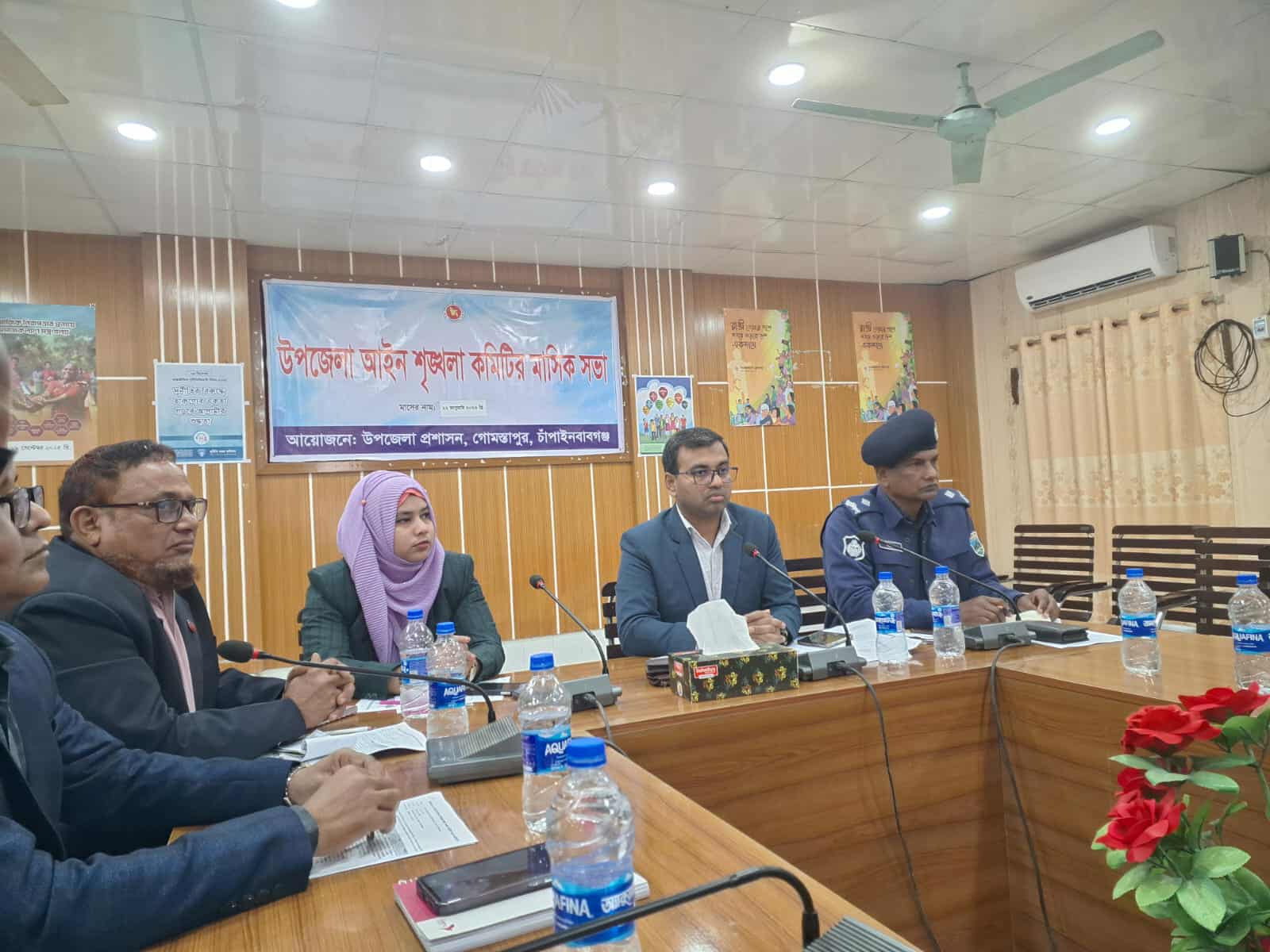 চাঁপাইনবাবগঞ্জের গোমস্তাপুরে আইন শৃঙ্খলা কমিটির মাসিক সভা অনুষ্ঠিত হয়েছে।