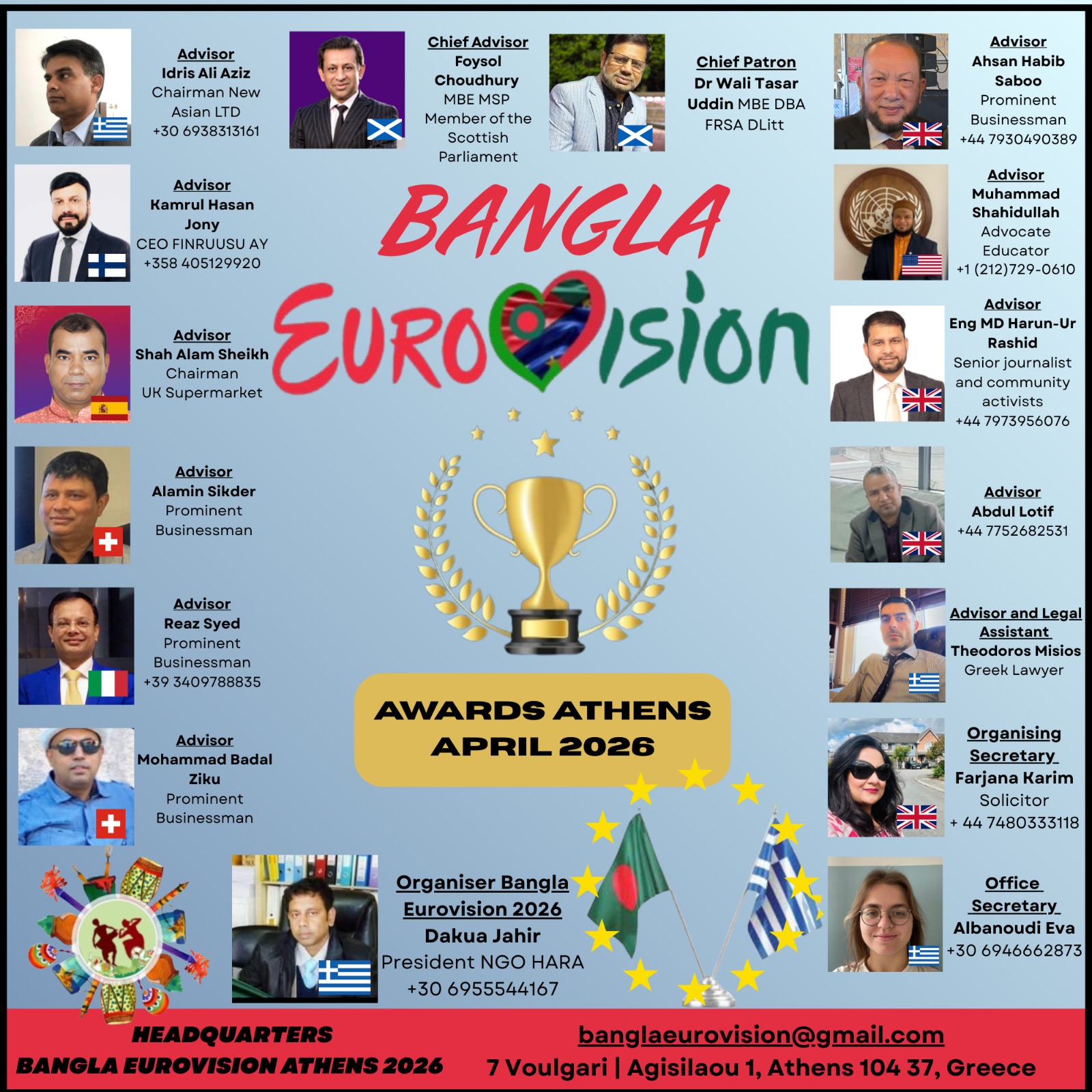 গ্রিসের এথেন্সে অনুষ্ঠিত হতে যাচ্ছে বাংলা ইউরোভিশন কমিউনিটি অ্যাওয়ার্ড ২০২৬