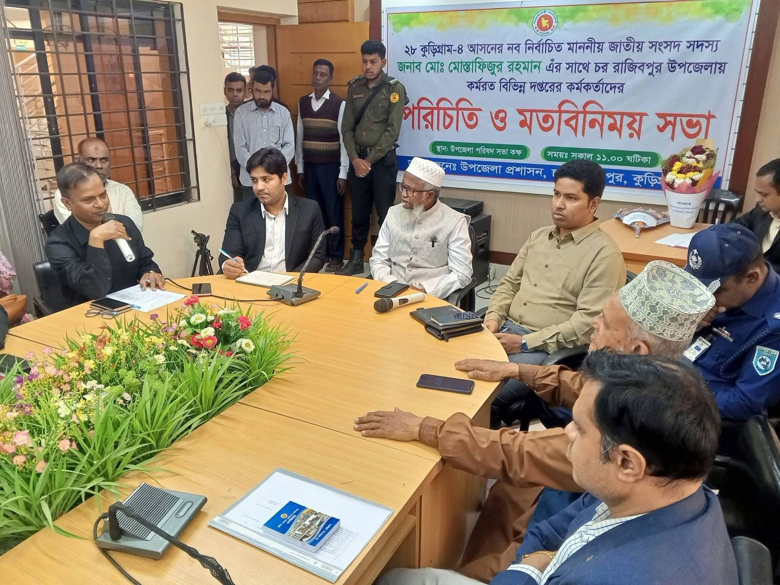 ঘুষ-দুর্নীতিতে জিরো টলারেন্স: রাজিবপুর প্রশাসনের সঙ্গে মতবিনিময় এমপি মোঃ মোস্তাফিজুর রহমান মোস্তাক।