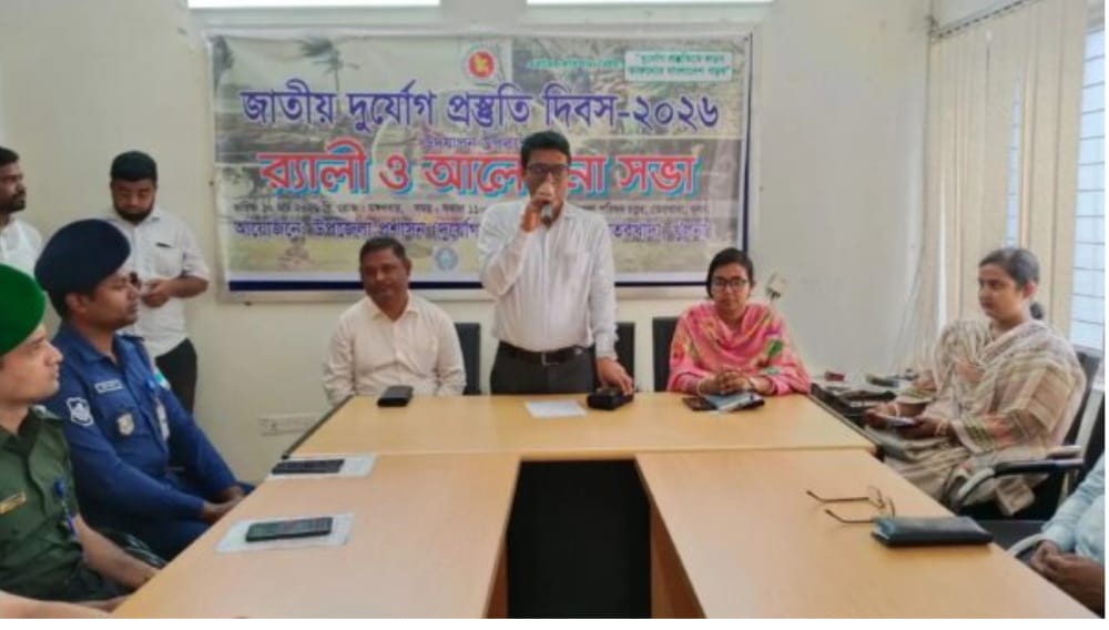 তেরখাদায় উপজেলা জাতীয় দুর্যোগ প্রস্তুতি দিবস ২০২৬ উপলক্ষে র‍্যালি ও আলোচনা সভা।