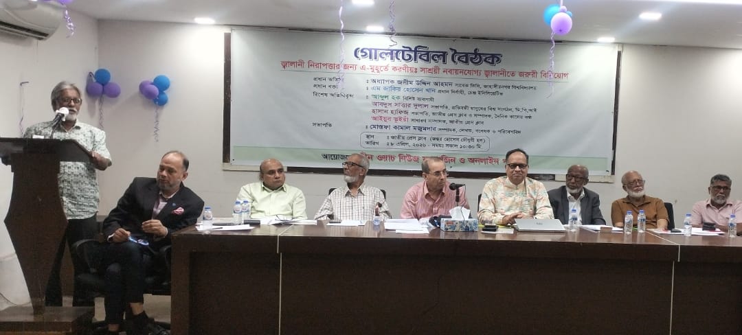 মো: সাইফুল আলম সরকার, ঢাকা: নবায়নযোগ্য জ্বালানীতে জরুরী বিনিয়োগ বাড়িয়ে জ্বালানী নিরাপত্তা নিশ্চিত করার লক্ষ্যে আজ ৮ এপ্রিল ২০২৬ বুধবার জাতীয় প্রেসক্লাবের জহুর হোসেন চৌধুরী হলে এক গোলটেবিল বৈঠকে পরিবেশবিদ, গবেষক, বিশেষজ্ঞ ও সমাজকর্মিরা যুদ্ধের কারণে ঘনিভূত আমদানী নির্ভর জ্বালানী সংকট দ্রুত কাটিয়ে ওঠার জন্য জ্ররুরী ভিত্তিতে নবায়নযোগ্য জ্বালানী খাতে বিনিয়োগ বৃদ্ধি ও উৎসাহিত করার আহবান জানিয়েছেন।