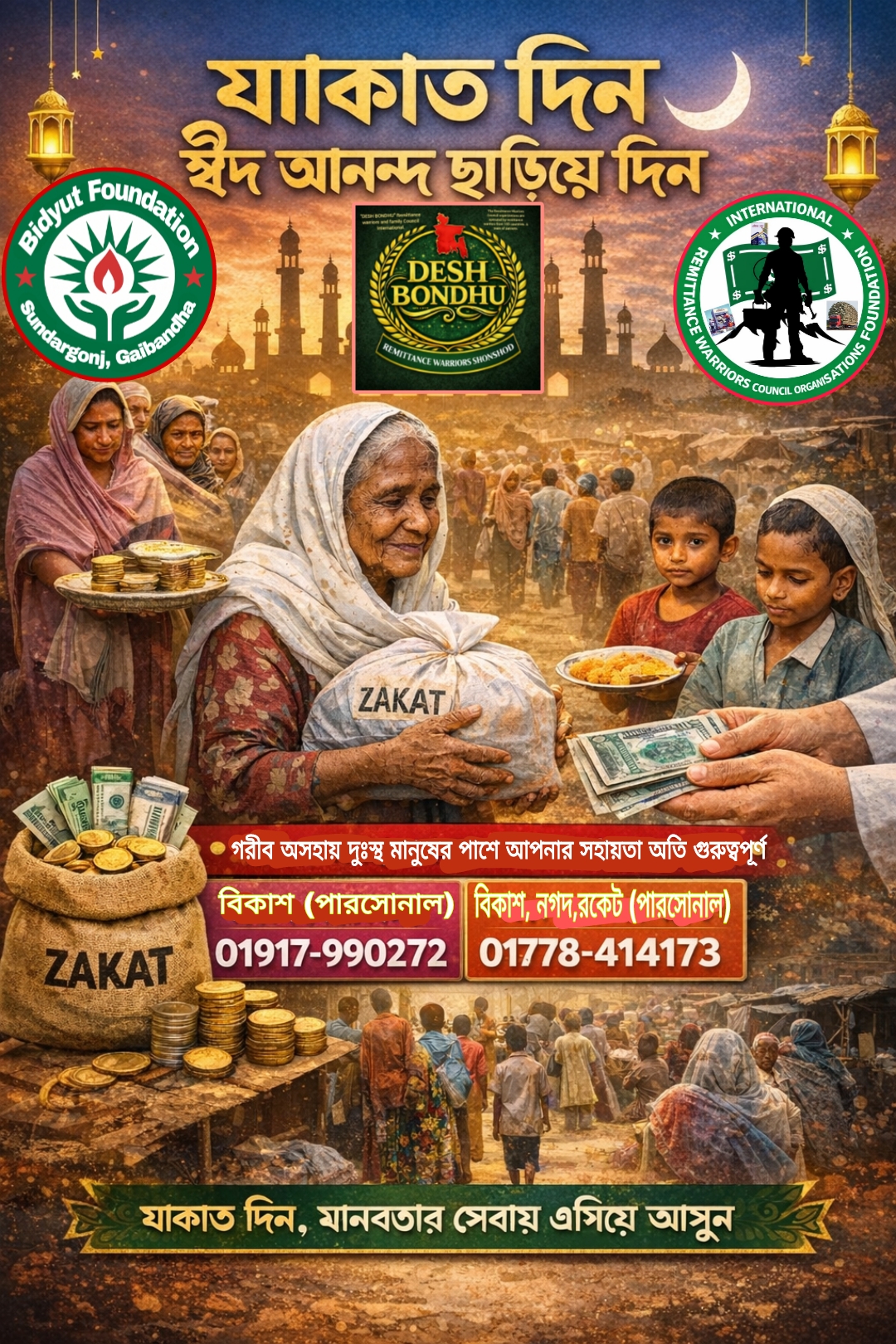 সকল সামর্থ্যবান ব্যক্তিকে বিশেষভাবে অনুরোধ করা হয়েছে, পবিত্র ঈদের আগে যাকাত প্রদানের মাধ্যমে অসহায় মানুষের পাশে দাঁড়াতে।
