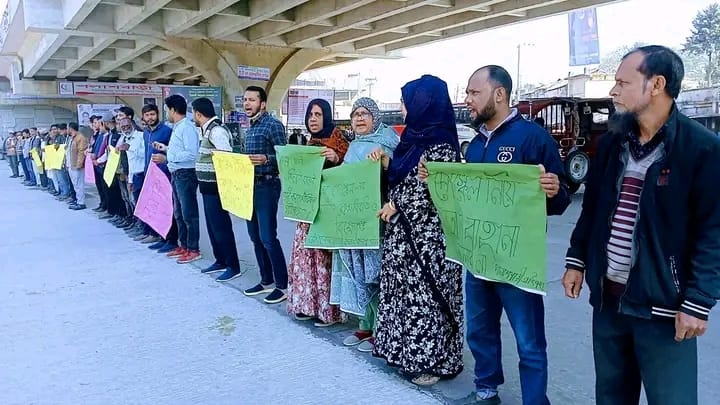 পলাশবাড়ীতে নবম পে স্কেলের গেজেট বাস্তবায়নের দাবিতে অবস্থান কর্মসূচি