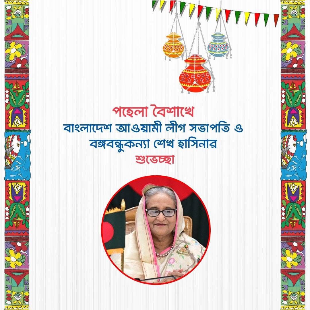পহেলা বৈশাখে বাংলাদেশ আওয়ামী লীগ সভাপতি ও সাবেক প্রধানমন্ত্রী শেখ হাসিনার শুভেচ্ছা