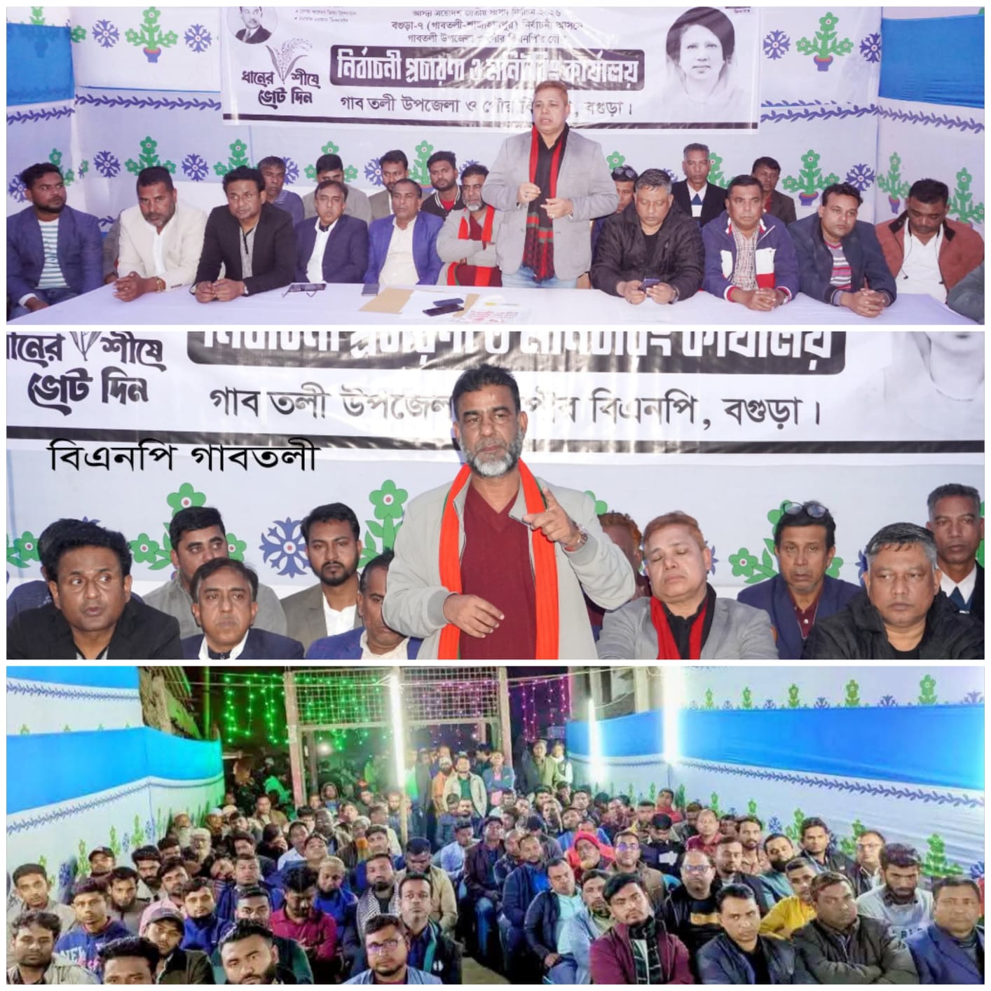 স্টাফ রিপোর্টার: বগুড়া-৭ নির্বাচনী আসনে নির্বাচনী প্রচারনা ও মনিটরিং উপলক্ষ্য রবিবার গাবতলী উপজেলা ও পৌর বিএনপির এক যৌথ আলোচনা সভা দলীয় কার্যালয়ে অনুষ্ঠিত হয়। জেলা বিএনপির সহ-সভাপতি ও গাবতলী উপজেলা বিএনপির সভাপতি মোরশেদ মিল্টন এর সভাপতিত্বে এতে স্বাগত বক্তব্য রাখেন জেলা বিএনপির যুগ্ম সাধারণ সম্পাদক ও গাবতলী উপজেলা বিএনপির সাধারণ সম্পাদক এনামুল হক নতুন। আরো বক্তব্য রাখেন জেলা বিএনপির মানবাধিকার বিষয়ক সম্পাদক ও সাবেক মেয়র সাইফুল ইসলাম, জেলা বিএনপির গ্রাম সরকার বিষয়ক সম্পাদক পৌর বিএনপির সাধারণ সম্পাদক আব্দুর রহিম পিটু, উপজেলা বিএনপির সহ-সভাপতি অধ্যাপক নজমুল হাসন, যুগ্ম সাধারণ সম্পাদক ফিরাজ মন্ডল, সুরাইয়া জরিন রনি, পৌর বিএনপির যুগ্ম সম্পাদক হারুনুর রশিদ হারুন, সাংগঠনিক সম্পাদক তরিকুল ইসলাম, উপজেলা বিএনপির সহ-সাধারণ সম্পাদক আব্দুল গফুর টুকু, মিজানুর রহমান মিন্টু, সহ-সাংগঠনিক সম্পাদক এমআর ইসলাম রাখু, উপজেলা যুবদলের আহবায়ক আরিফুর রহমান মজনু, সিনিয়র যুগ্ম আহবায়ক রুহুল হাসান রুহিন, যুগ্ম আহবায়ক মহব্বত আলী, মিনহাজুল ইসলাম, মতিয়ার রহমান মতি, মশিউর রহমান সুমন, জেলা যুবদল নেতা সাব্বির হাসান, উপজেলা স্বেচ্ছাসেবক দলের আহ্বায়ক রাকিবুল হাসান হিরু, সদস্য সচিব সুজা উদ্দিন সুজা, যুগ্ম আহবায়ক মামুনুর রশিদ ঠান্ডু, আরাফাত রহমান, সোহেল মন্ডল, ইলিয়াস মাহমুদ উজ্জ্বল, নিহাদ আনোয়ার বাদল, সহ দপ্তর রুহুল আমীন, উপজেলা তাঁতীদলের সভাপতি রাশেদুল রহমান রাঙ্গা, উপজেলা ছাত্রদলের ভারপ্রাপ্ত সভাপতি নাজমুল হাসান ডিটল, সাধারণ সম্পাদক এস এম রাঙ্গা, সাংগঠনিক সম্পাদক মোস্তাফিজুর রহমান মোস্তা, পৌর শ্রমিকদলের সভাপতি শফিকুল ইসলাম, পৌর ছাত্রদলের সভাপতি জাকিরুল ইসলাম লুকু, সাধারণ সম্পাদক রাহাত রহমান তাসকিন, পৌর স্বেচ্ছাসেবক দলের আহায়ক পবন সরকার, সদস্য সচিব আব্দুর রহমান লিমন, উপজেলা শ্রমিকদলের সাধারণ সম্পাদক শাহীন পাইকার, পৌর মহিলা দলের সভাপতি কানিজ ফাতেমা সুরভী সহ বিএনপি ও অঙ্গদলের বিভিন্ন পর্যায়ের নেতৃবৃন্দ প্রমূখ।