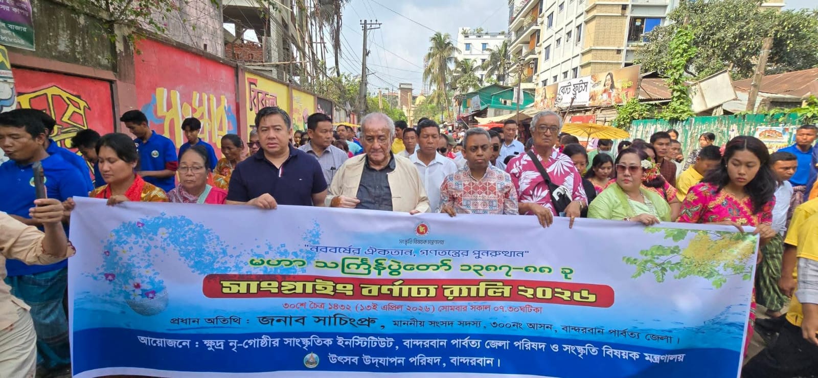 বর্ণাঢ্য এই আয়োজনে সকালে প্রধান অতিথি হিসেবে উপস্থিত থেকে সাংগ্রাই উৎসবের শুভ সুচনা করেন, বান্দরবান ৩০০ নং আসনের সংসদ সদস্য সাচিং প্রু জেরী এমপি।