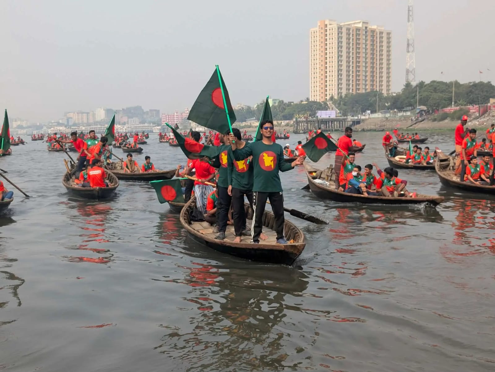 মহান বিজয় দিবস উপলক্ষে ঢাকার বুড়িগঙ্গা নদীতে একশটি নৌকা নিয়ে ব্যতিক্রমধর্মী নৌ র্যালির আয়োজন করেছে জগন্নাথ বিশ্ববিদ্যালয় শাখা ইসলামী ছাত্রশিবির।