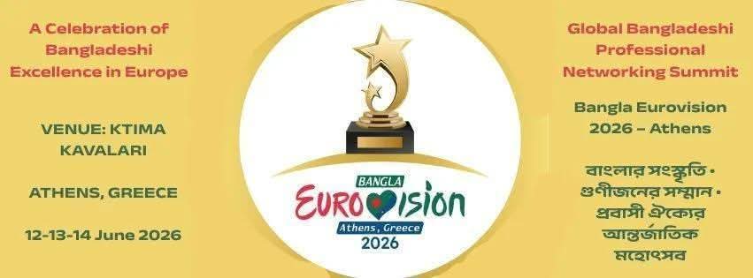 Bangla Eurovision Community Awards – গুরুজনের সংবর্ধনা ২০২৬ আয়োজনকে ঘিরে প্রবাসী বাংলাদেশিদের মধ্যে ইতোমধ্যে ব্যাপক উৎসাহ ও আগ্রহ লক্ষ্য করা যাচ্ছে। আয়োজকদের প্রত্যাশা, এই অনুষ্ঠান এথেন্সে প্রবাসী বাংলার ইতিহাসে একটি স্মরণীয় ও গর্বিত অধ্যায় হয়ে থাকবে।
