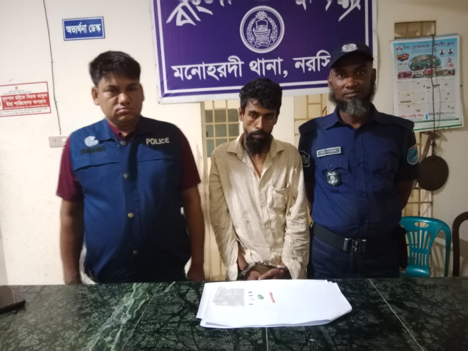 পুলিশ সূত্রে জানা যায়, মনোহরদী থানার অফিসার ইনচার্জ মোঃ শাহিনুল ইসলামের দিকনির্দেশনায় এলাকাকে মাদকমুক্ত করতে নিয়মিত বিশেষ অভিযান পরিচালনা করা হচ্ছে। এরই ধারাবাহিকতায় অত্র থানার সাব-ইন্সপেক্টর মোঃ আল ইসলাম সঙ্গীয় ফোর্সসহ ২ এপ্রিল ২০২৬ খ্রিষ্টাব্দে ডিউটি পালনকালে মনোহরদী থানাধীন বীরগাঁও চৌরাস্তা বাজার এলাকায় অবস্থানকালে গোপন সংবাদের ভিত্তিতে জানতে পারেন যে, কৃষ্ণপুর ইউনিয়নের খালিয়াবাইদ গ্রামের জনৈক মোঃ রফিকুল ইসলামের বসতবাড়িতে মাদকদ্রব্য ক্রয়-বিক্রয় হচ্ছে।