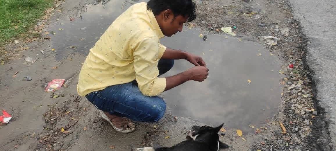 অবচেতন ভাবেই সড়কের মাঝ খান থেকে দু'হাত দিয়ে কুকুরের চার পা ধরে পাশে নিয়ে এলাম,জমে থাকা বৃষ্টির পানি মুখে দিলাম,কিছুটা মুখে,জিহ্বায় পড়লো কিছুটা বাহিরে গড়ালো,বেশ কয়েক বার এভাবে পানি দেওয়ার পরে মনে হলো,কুকুরটা পানি পান করে শেষ নিঃশ্বাস নিল,,,,আজ হঠাৎ একজন ম্যাসেঞ্জারে ছবিগুলো পাঠালো।