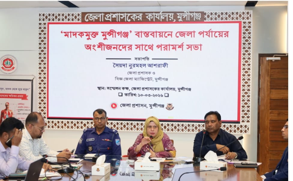 গতকাল মঙ্গলবার (১০ মার্চ) জেলা প্রশাসন, মুন্সিগঞ্জের উদ্যোগে জেলা প্রশাসকের কার্যালয়ের সম্মেলন কক্ষে ‘মাদকমুক্ত মুন্সিগঞ্জ’ বাস্তবায়নে জেলা পর্যায়ের অংশীজনদের সঙ্গে এ পরামর্শ সভা অনুষ্ঠিত হয়।