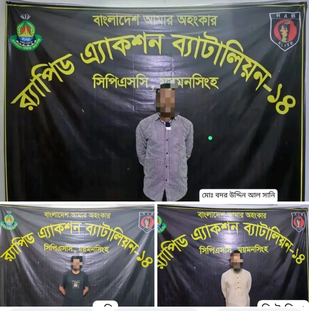 ময়মনসিংহে হত্যা মামলার প্রধান আসামী র্যাব ১৪ কর্তৃক গ্রেফতার ০১ ও পৃথক অভিযানে গ্রেপ্তার ০২
