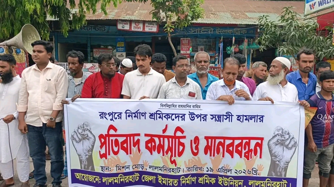 রংপুরে নির্মাণ শ্রমিকদের ওপর হামলার প্রতিবাদ: লালমনিরহাটে মানববন্ধন ও ৩ দিনের আলটিমেটাম