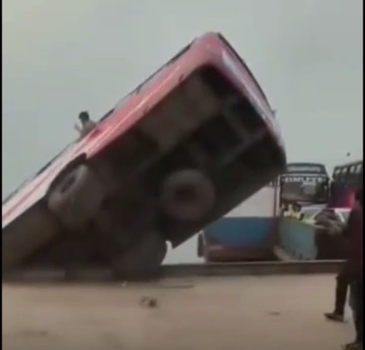 রাজবাড়ির গোয়ালন্দের দৌলতদিয়া ফেরি ঘাটে ফিরিতে উঠার সময় যাত্রীবাহী বাস নিয়ন্ত্রণ হারিয়ে নদীতে পড়ে নিহত ৪, নিখোঁজ ৪৫।