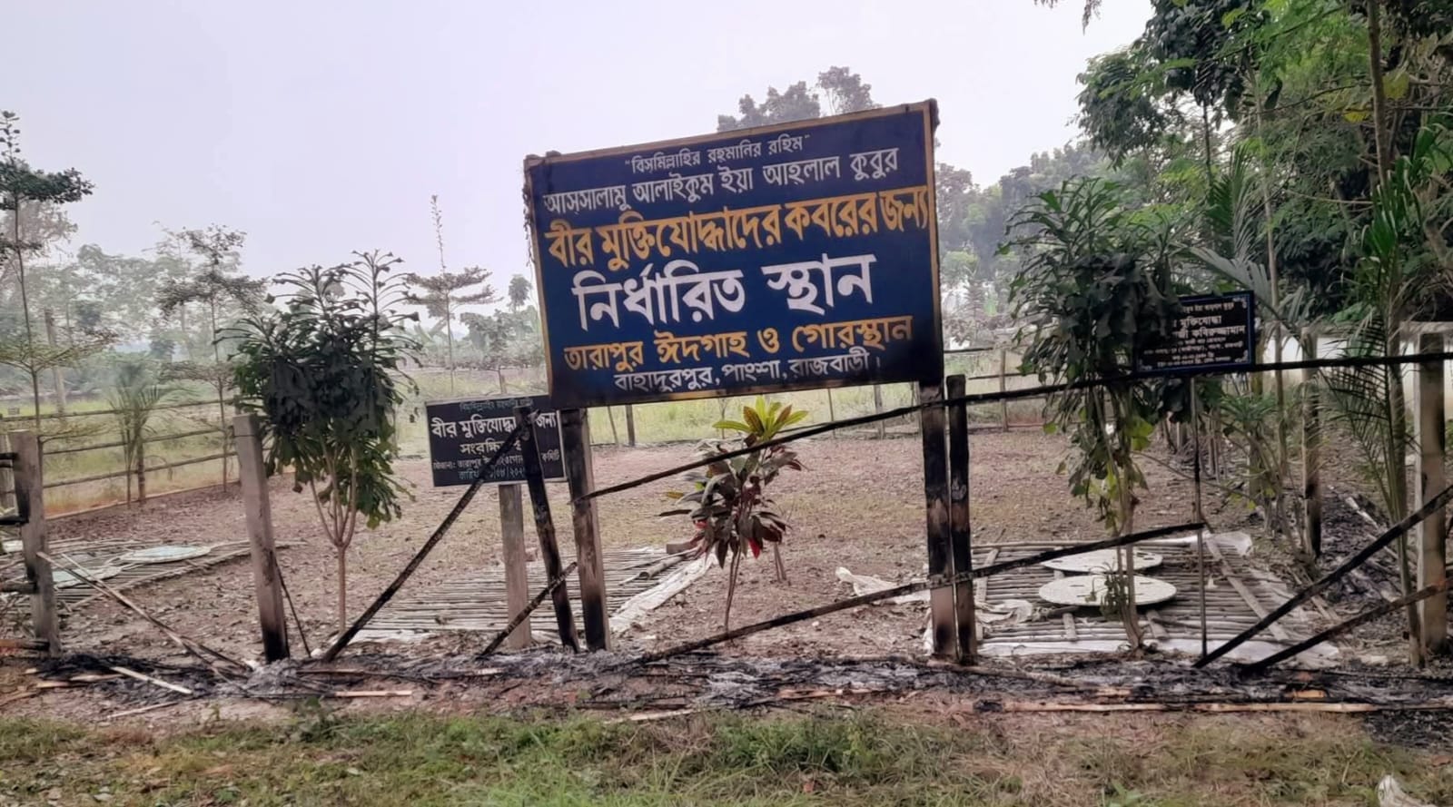 রাজবাড়ীর পাংশা উপজেলার বাহাদুরপুর ইউনিয়নের তারাপুরে পাঁচ মুক্তিযোদ্ধার কবরস্থানে বাঁশের সীমানা প্রাচীর দিয়ে ঘেরাও করা অংশে আগুন দিয়েছে দুর্বৃত্তরা।