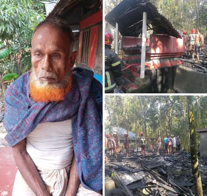রাজাপুরে বৈদ্যুতিক শর্ট-সার্কিটে দিনমজুর “ফজলুর” বসতঘর পুড়ে ছাই, খোলা আকাশের নিচে নিঃস্ব পরিবার