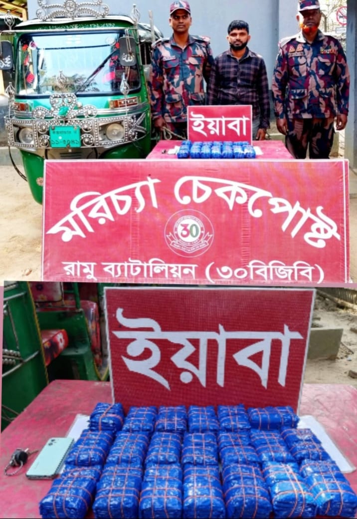 রামু ব্যাটালিয়নের অভিযানে মরিচ্যা চেকপোস্টে ৪০ হাজার ইয়াবাসহ মাদক কারবারি আটক
