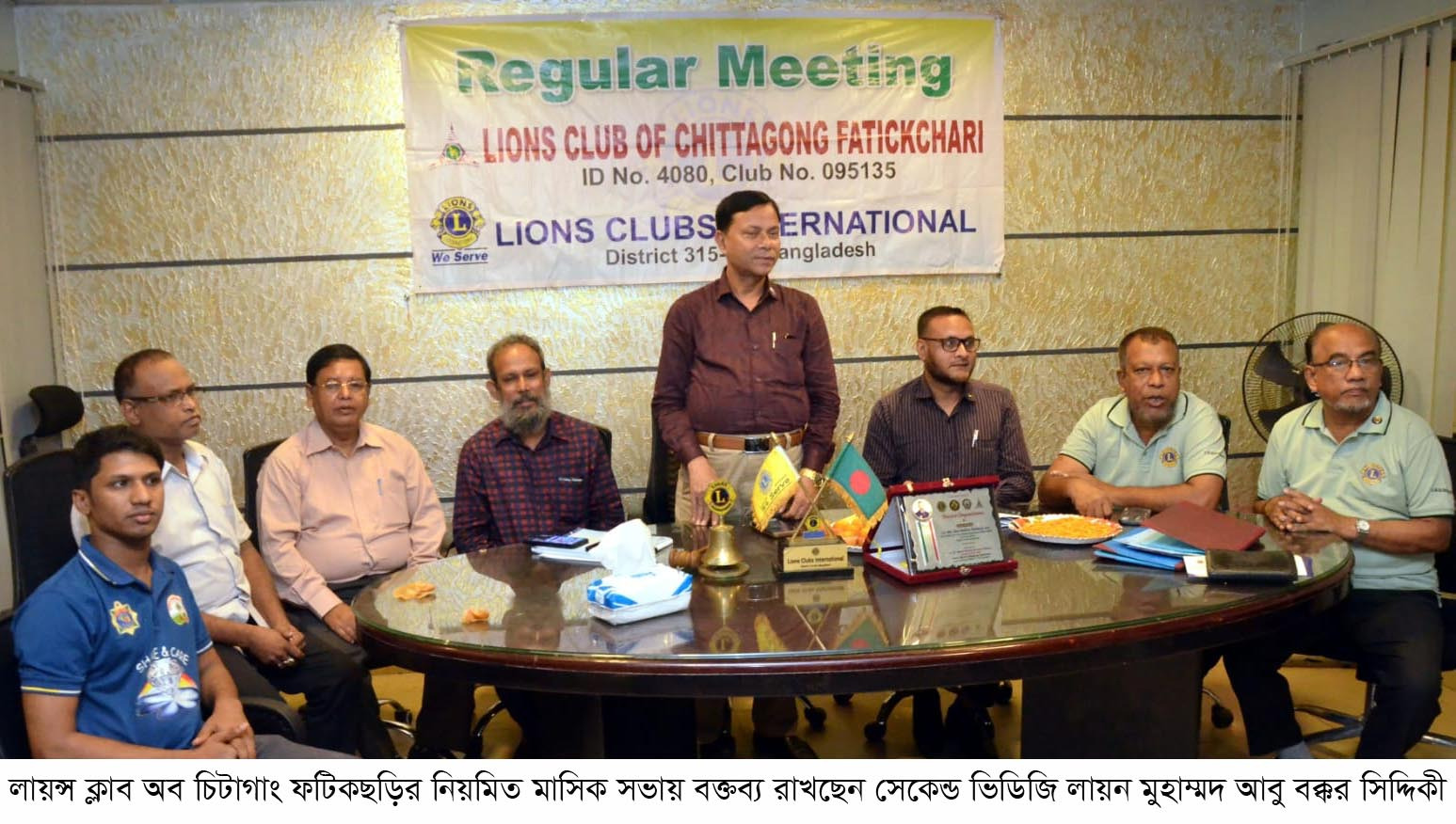 লায়ন্স ক্লাব অব চিটাগাং ফটিকছড়ি প্রেসিডেন্ট লায়ন ডা. বরুণ কুমার আচার্যের সভাপতিত্বে এ সভায় প্রধান অতিথি হিসেবে উপস্থিত ছিলেন সেকেন্ড ভিডিজি লায়ন মুহাম্মদ আবু বক্কর সিদ্দিকী।