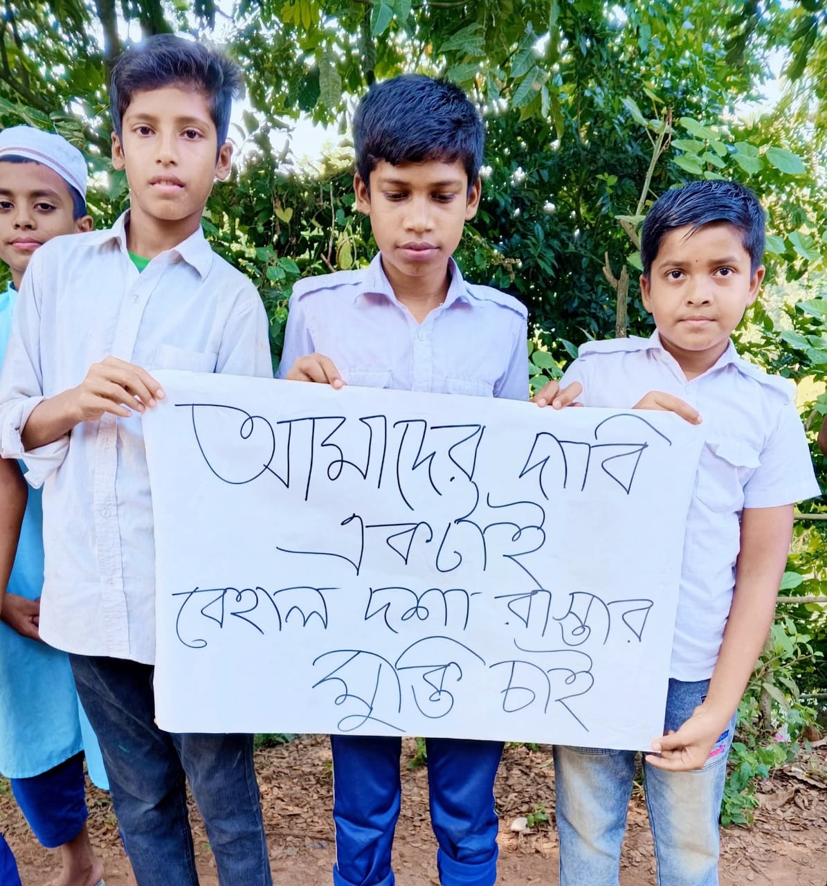 শম্ভুগঞ্জ-পরানগঞ্জ সড়কের অসমাপ্ত ৪ কিলোমিটার অংশের নির্মাণ দাবিতে মানববন্ধন