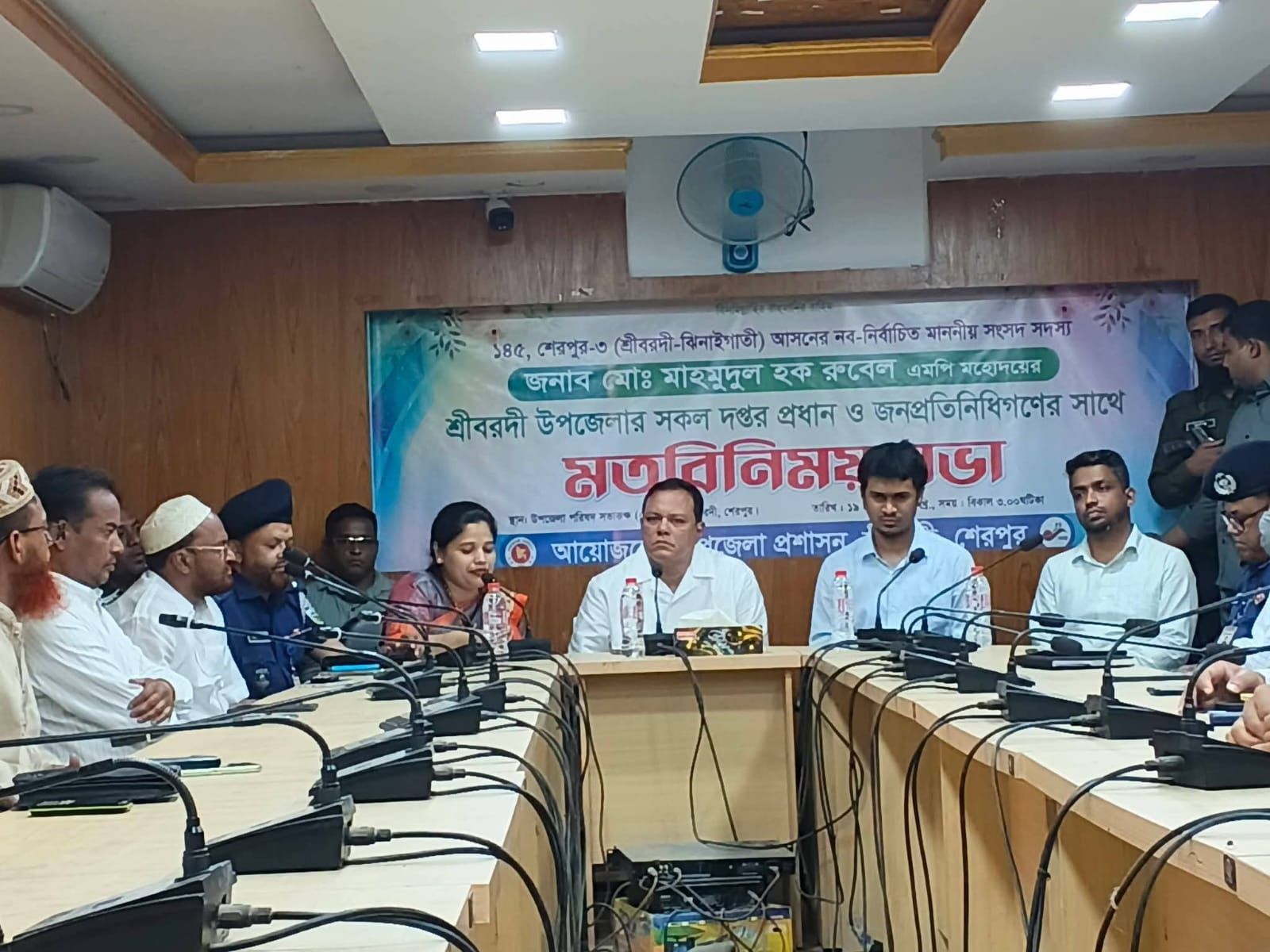 পুলিশ প্রশাসনের কর্মকর্তা ও জনপ্রতিনিধিদের সাথে মতবিনিময় করেছেন ১৪৫ শেরপুর ৩ সংসদীয় আসনের বিএনপির দলীয় নবনির্বাচিত সংসদ সদস্য মাহমুদুল হক রুবেল।