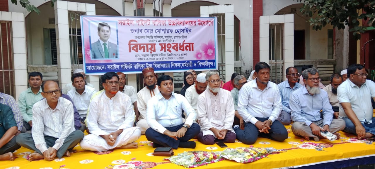 সরাইল উপজেলা নির্বাহী অফিসার মো. মোশারফ হোসাইনকে আনুষ্ঠানিক বিদায় সংবর্ধনা