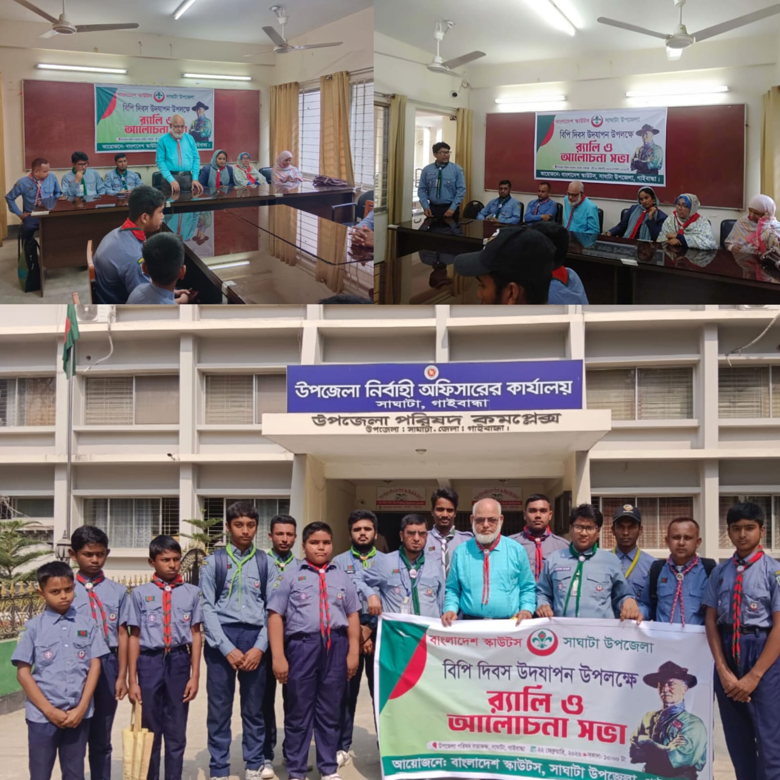 স্কাউট আন্দোলনের প্রতিষ্ঠাতা Robert Stephenson Smyth Baden-Powell-এর ১৬৯তম জন্মবার্ষিকী (বিপি দিবস) উপলক্ষে সাঘাটা উপজেলায় কাব ও স্কাউটদের অংশগ্রহণে বর্ণাঢ্য ও তাৎপর্যপূর্ণ কর্মসূচির আয়োজন করা হয়। দিবসটি ঘিরে দিনব্যাপী নানা আয়োজনের মাধ্যমে স্কাউটদের মাঝে উৎসাহ-উদ্দীপনা লক্ষ্য করা যায়।