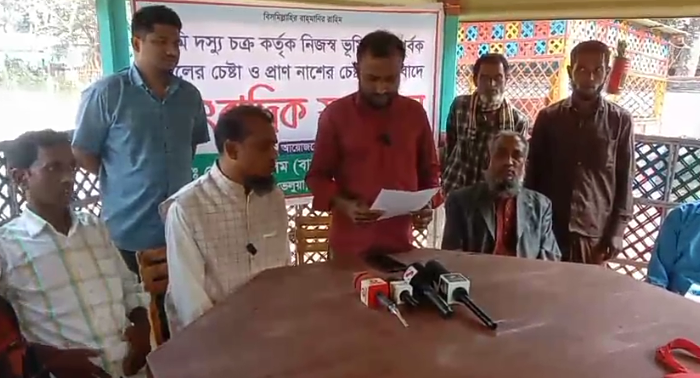 হামলাকারীরা মোবাইল ফোন ছিনিয়ে নেয় এবং প্রাণনাশের হুমকি দিয়ে জমি ছেড়ে দেওয়ার জন্য চাপ দেয়।