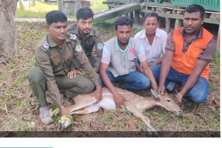 সুন্দরবনে বাঘের তাড়া খেয়ে লোকালয়ে চিত্রল হরিণ, উদ্ধার করে সুন্দরবনে অবমুক্ত।