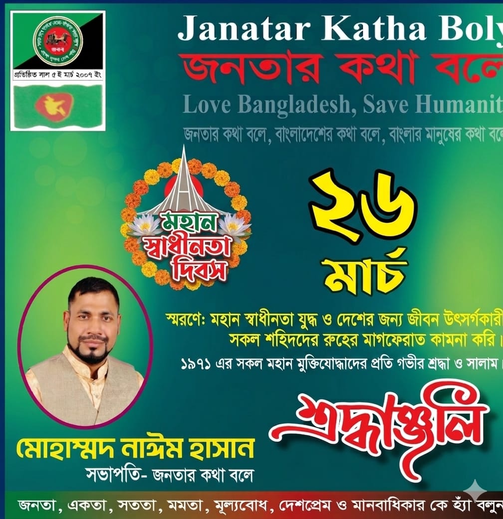 ২৬ শে মার্চ মহান স্বাধীনতা দিবস।