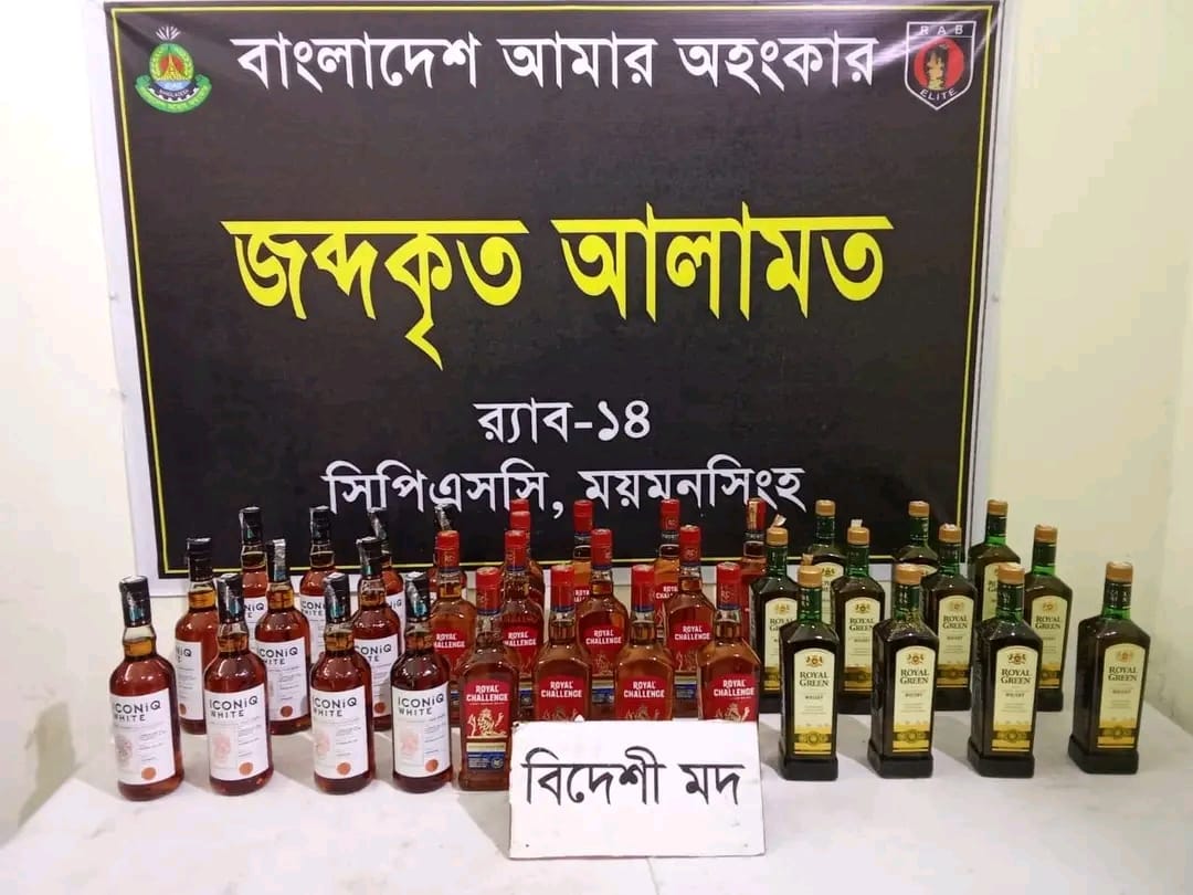 ময়মনসিংহ সিপিএসসি, র্যাব-১৪, কর্তৃক ৩৫ বোতল আমদানি নিষিদ্ধ বিদেশি মদসহ মাদককারবারি ১ জনকে গ্রেফতার করেছেন।