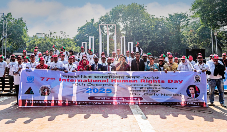 ৭৭তম বিশ্ব মানবাধিকার দিবস উপলক্ষে আন্তর্জাতিক মানবাধিকার সুরক্ষা এবং বিরোধ নিষ্পত্তি কেন্দ্র (IHPDRC) ঢাকায় বর্ণাঢ্য র্যালি ও আলোচনা সভার আয়োজন করেছে। মঙ্গলবার সকালে ঢাকা কেন্দ্রীয় শহীদ মিনার থেকে পলাশীর মোড় পর্যন্ত এই র্যালি অনুষ্ঠিত হয়।