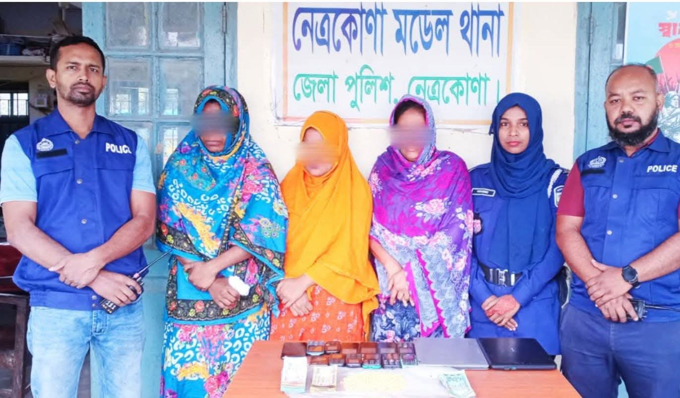 গোপন সংবাদের ভিত্তিতে নেত্রকোণা জেলার সুযোগ্য পুলিশ সুপার জনাব মোঃ তরিকুল ইসলাম মহোদয়ের দিকনির্দেশনায়, অতিরিক্ত পুলিশ সুপার, সদর সার্কেল ও নেত্রকোণা মডেল থানার অফিসার ইনচার্জ জনাব মোঃ আল-মামুন সরকার এর সার্বিক তত্ত্বাবধানে নেত্রকোণা মডেল থানা পুলিশের বিশেষ অভিযানিক দল অদ্য ২৭-০৪-২০২৬ খ্রি. তারিখ রাত অনুমান ০০.৩ ঘটিকার সময় মাদক ব্যবসায়ী ১। আল আমিন (৩২), পিতা-মৃত মুসলিম উদ্দিন, ২। মোঃ রাসেল (২৮), পিতা-মোঃ বাবুল মিয়া, ৩। মোঃ বাবুল মিয়া (৪৮), পিতা-সজু মিয়া, সর্ব সাং-রাজেন্দ্রপুর, ৪। মোঃ মুবিন (২৮), পিতা-অজ্ঞাত, সাং-অজ্ঞাত, সর্ব থানা ও জেলা-নেত্রকোণাদের হেফাজত হইতে ৬০০ (ছয়শত) পিস ইয়াবা ট্যাবলেট উদ্ধার করে। এই সময় আসামী ৫। টুম্পা আক্তার (২৫), স্বামী-মোঃ রাসেল, ৬। রেজিয়া (৪০), স্বামী-মোঃ বাবুল মিয়া, ৭। সানিয়া আক্তার (২৫), স্বামী-আল আমিন, সর্ব সাং-রাজেন্দ্রপুর, থানা ও জেলা-নেত্রকোণাগন সহ অজ্ঞানামা ৭/৮ জন নারী ও পুরুষ লাঠি, লোহার রড এবং ধারালো দা সহ পুলিশের উপর আক্রমন করে করে পুলিশ হেফাজত হতে ১,২,৩ ও ৪ নং আসামীদের ছিনিয়ে নেয়। তাৎক্ষনিক থানা পুলিশের আরেকটি দল দ্রুত ঘটনাস্থলে হাজির হয়ে টুম্পা আক্তার (২৫), রেজিয়া (৪০), সানিয়া আক্তার (২৫) দের আটক করেন এবং আসামীদের দেখানো মতে তাদের বসত ঘরের বিভিন্ন স্থান হতে আরো ৪০০ (চারশত) পিস ইয়াবা ট্যাবলেট, মাদক বিক্রির ৪৬,৭৮৫/- (ছিচল্লিশ হাজার সাতশত পঁচাশি) টাকা, ০২ টি পুরাতন ল্যাপটপ, বিভিন্ন মডেলের ১২ টি পুরাতন বাটন ফোন, ০১ একটি অপো স্মার্ট ফোন, মাদক কেনা বেচার কাজে ব্যবহৃত বিভিন্ন ব্যান্ডের ০৩ টি মোটর সাইকেল, ০২ টি লোহার রড, ০৩ টি লাঠি জব্দ করে। আটককৃত আসামীদের জিজ্ঞাসাবাদে জানা যায় যে, তাহারা চিহ্নিত মাদক ব্যবসায়ী ও ডিলার। পলাতক আসামী ও গ্রেফতারকৃত আসামীরা একই পরিবারের সদস্য তারা একে অপরের সহযোগীতায় দীর্ঘদিন যাবৎ মাদকদ্রব্য (ইয়াবা ট্যাবলেট) নেত্রকোণা মডেল থানাসহ জেলার বিভিন্ন স্থানে ক্রয়-বিক্রয় করিয়া আসতেছে। এ সংক্রান্তে পরবর্তী আইনগত ব্যবস্থা প্রক্রিয়াধীন ।