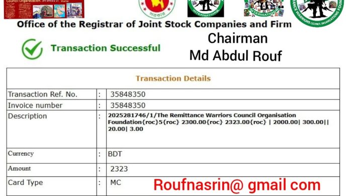 বিদ্যুৎ চন্দ্র বর্মন, নিজস্ব প্রতিবেদক: বিশ্বের ১৯৫টি দেশে অবস্থানরত প্রবাসী যোদ্ধাদের সমন্বয়ে গঠিত The Remittance Warriors Council–এর পক্ষ থেকে বিশ্বব্যাপী ঐক্য, ভ্রাতৃত্ব ও মানবিকতার বার্তা দেওয়া হয়েছে। সংগঠনটির অন্যতম উদ্যোক্তা