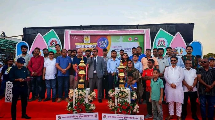 মকবুল হোসেন, সিনিয়র রিপোটারঃ ময়মনসিংহ জেলা প্রশাসক গোল্ডকাপ ফুটবল টুর্নামেন্ট-এর জমকালো ফাইনাল ম্যাচ ও পুরস্কার বিতরণী অনুষ্ঠান জেলা স্টেডিয়ামে অনুষ্ঠিত হয়। আজ ২৩ সেপ্টেম্বর মঙ্গলবার বিকেলে ময়মনসিংহ জেলা স্টেডিয়ামে অনুষ্ঠিত