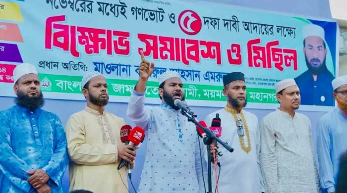 ময়মনসিংহে জামায়াতের বিক্ষোভ সমাবেশ ও মিছিল অনুষ্ঠিত মকবুল হোসেন,সিনিয়র রিপোটার ময়মনসিংহ মহানগর জামায়াত এর উদ্যোগে নভেম্বরের মধ্যেই গণভোট ও ৫ দফা দাবী আদায়ের লক্ষ্যেবিক্ষোভ সমাবেশ ও মেসির অনুষ্ঠিত হয়। আজ
