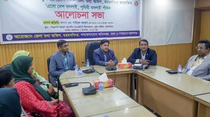 মকবুল হোসেন, সিনিয়র রিপোটার ময়মনসিংহ জেলা তথ্য অফিস, আয়োজনে তারুণ্য নির্ভর নতুন বাংলাদেশ গঠনে ‘এসো দেশ বদলাই, পৃথিবী বদলাই’ শীর্ষক আলোচনা সভা অনুষ্ঠিত হয়েছে। ময়মনসিংহ জেলা পরিষদের শিল্পাচার্য জয়নুল আবেদীন